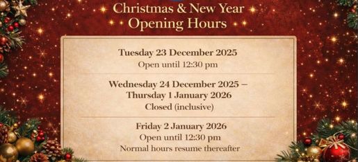 🎅 Tue 24 Dec – Wed 1 Jan: Closed